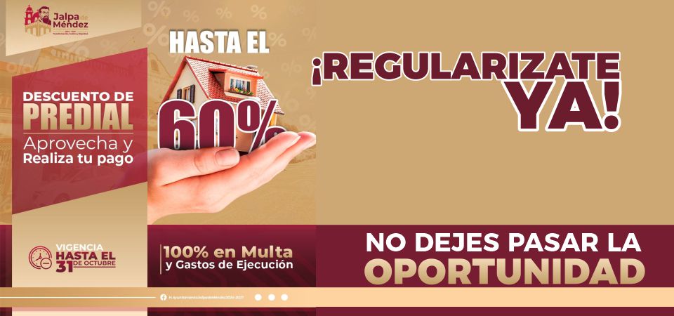 El H. Ayuntamiento de Jalpa de Méndez informa:¡Aprovecha los descuentos en el pago del Impuesto Predial 2025! Hasta 60% de descuento…