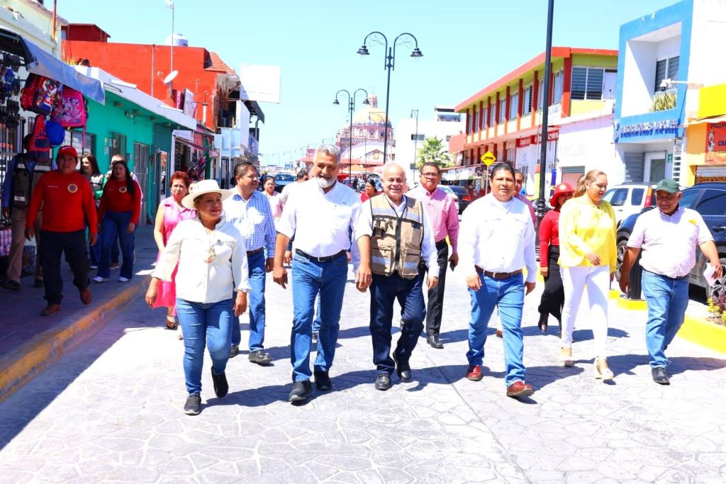 El Presidente Municipal, José del Carmen Olán Olán, encabeza el recorrido junto al Fiscal Superior del Estado, Juan José Peralta Fócil; los diputados José Medel Córdova Pérez y María Félix García Álvarez; acompañado por el Director de Obras Públicas, Ing. Juan Díaz Pérez; el Secretario del Ayuntamiento, Lic. Manuel Sastré de Dios; y la Contralora Municipal, Lic. Loyda Magaña Ruíz.