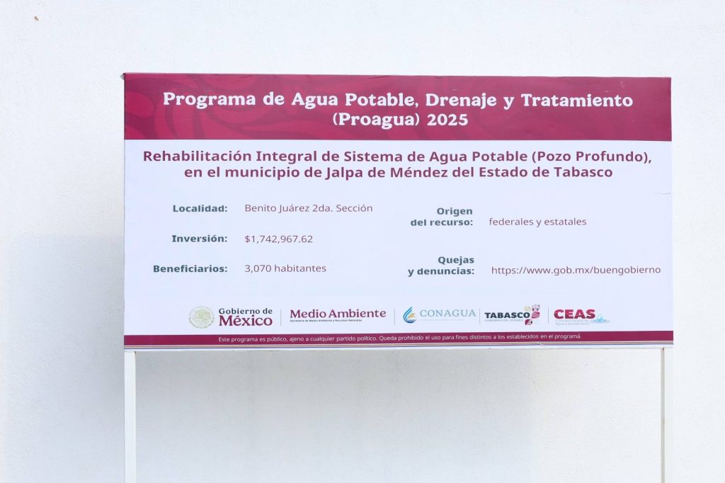 Se supervisó la obra concluida: Rehabilitación Integral del Sistema de Agua Potable (Pozo Profundo) en Benito Juárez 2da. Sección, que contempla equipamiento, tanque elevado de 50 m³, barda perimetral, subestación eléctrica, obra exterior y sistema de cloración.