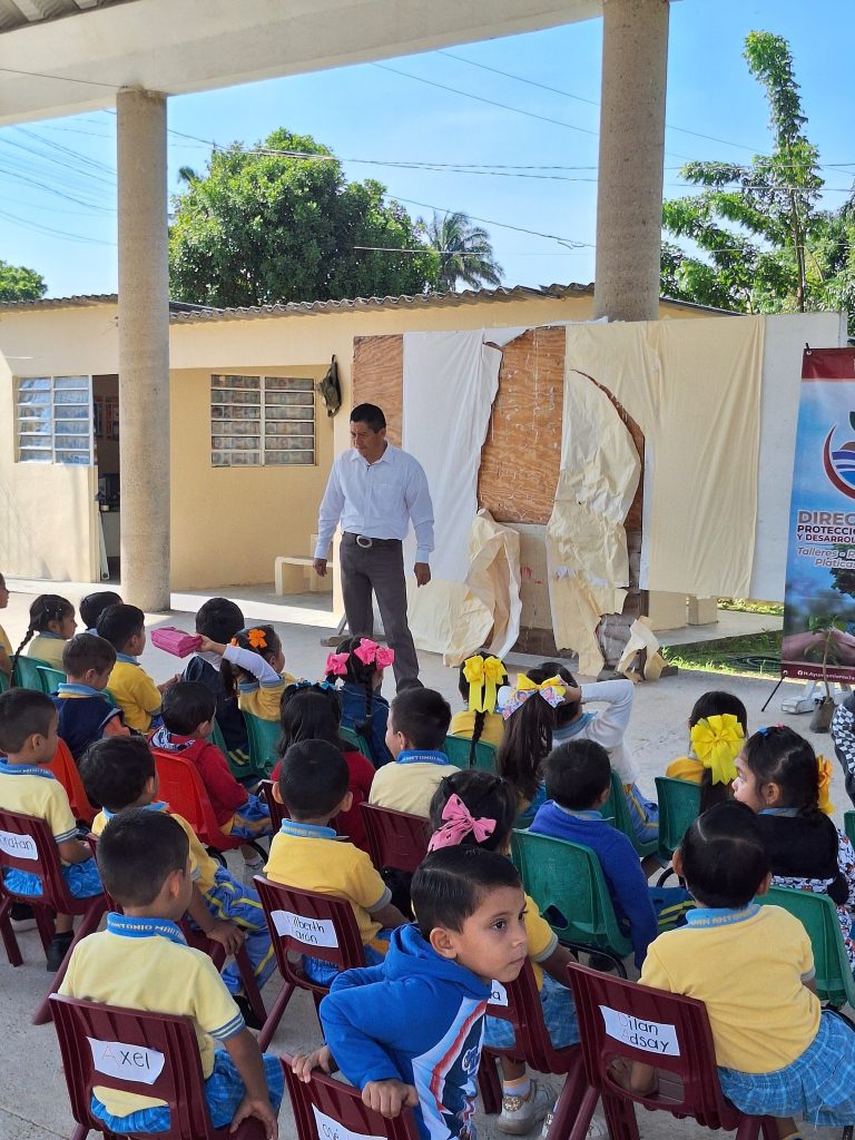 Hoy tocó el turno del Jardín de Niños “Juan Antonio Martínez López” del Ejido Ayapa, donde la Dirección de Protección Ambiental y Desarrollo Sustentable compartió actividades sencillas y prácticas para que las niñas y los niños aprendan a cuidar su entorno desde pequeños.