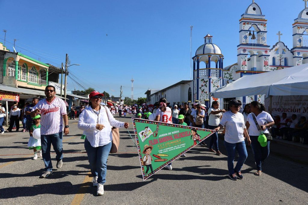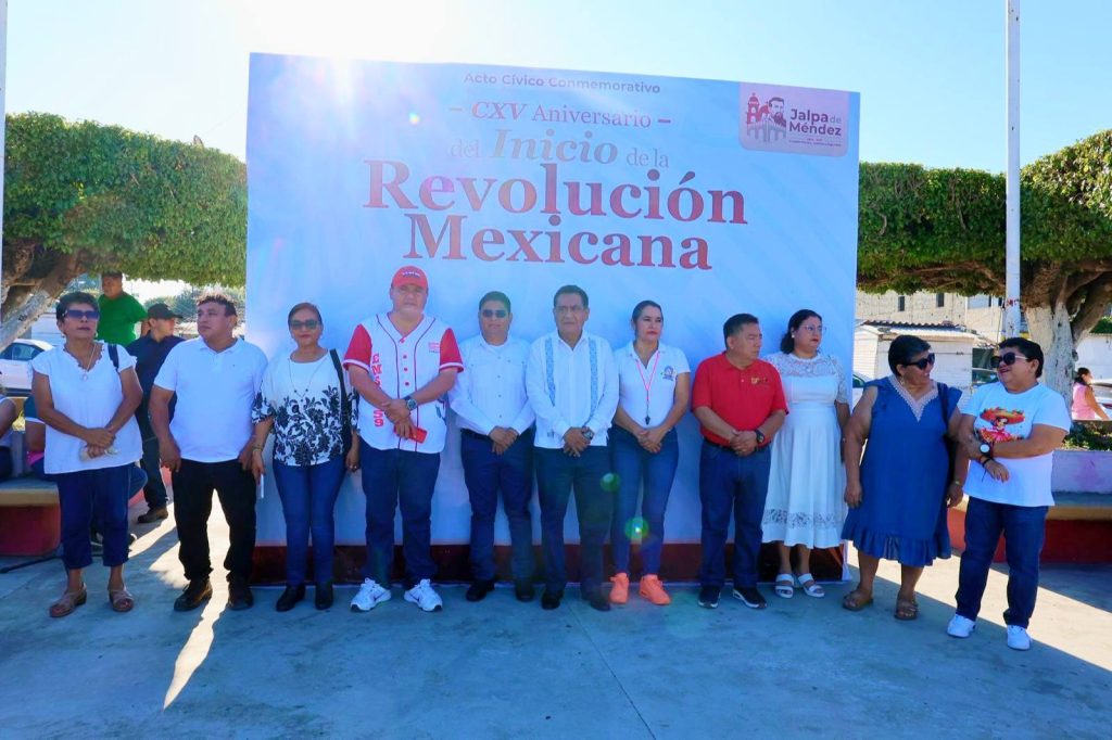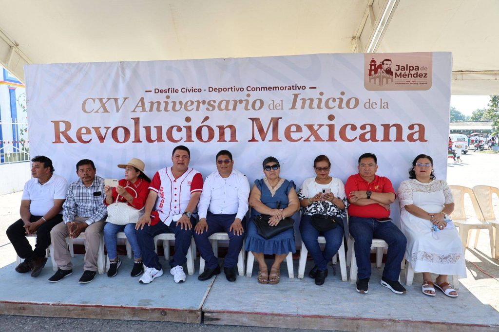Durante su mensaje, el presidente municipal destacó la importancia de mantener vivo el espíritu de unidad, esfuerzo y compromiso social que caracteriza esta fecha histórica, reafirmando que el legado de la Revolución continúa presente en cada comunidad de Jalpa de Méndez.