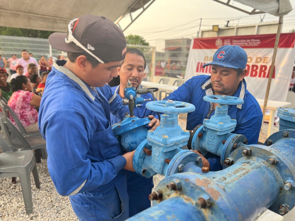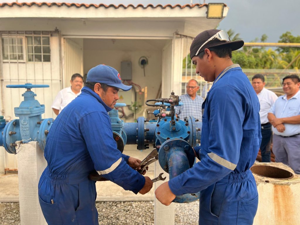 De manera paralela, inició el mantenimiento del pozo profundo, que comprende el desmantelamiento del equipo existente, sustitución de la bomba sumergible, modernización del sistema eléctrico y la instalación de un variador de frecuencia, regulador de voltaje trifásico de 100 KVA y supresor de picos de voltaje, que mejorará el servicio de agua potable para la comunidad. ![]()
