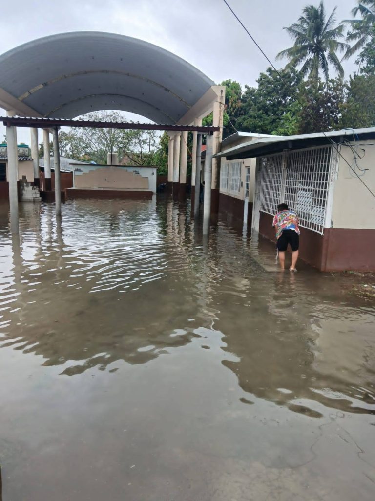 En la escuela primaria 18 de Marzo de la Ranchería Campo Petrolero Mecoacán, se realizaron trabajos para desalojar el agua acumulada, priorizando la seguridad de niñas y niños.