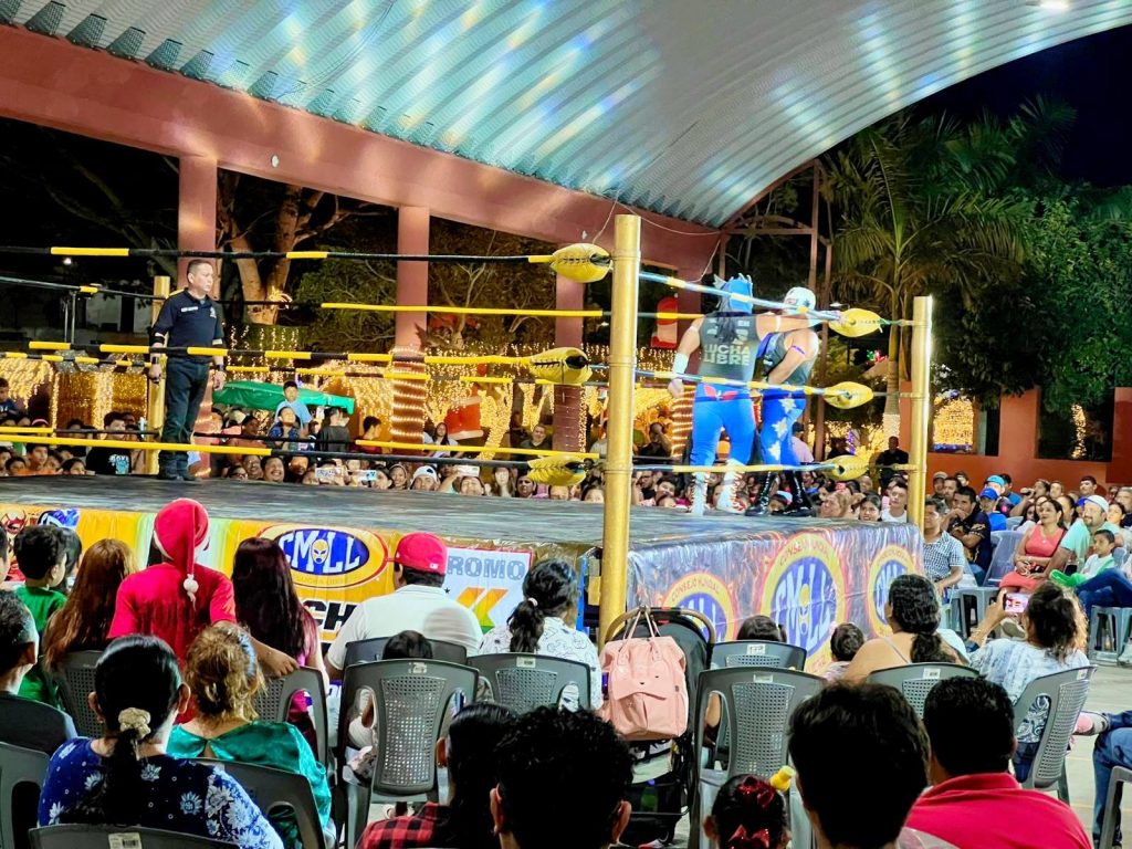 Las familias jalpanecas disfrutaron de presentaciones culturales y artísticas que llenaron de color y emoción la tarde-noche, culminando con un vibrante espectáculo de lucha libre, que reunió a niñas, niños y adultos.