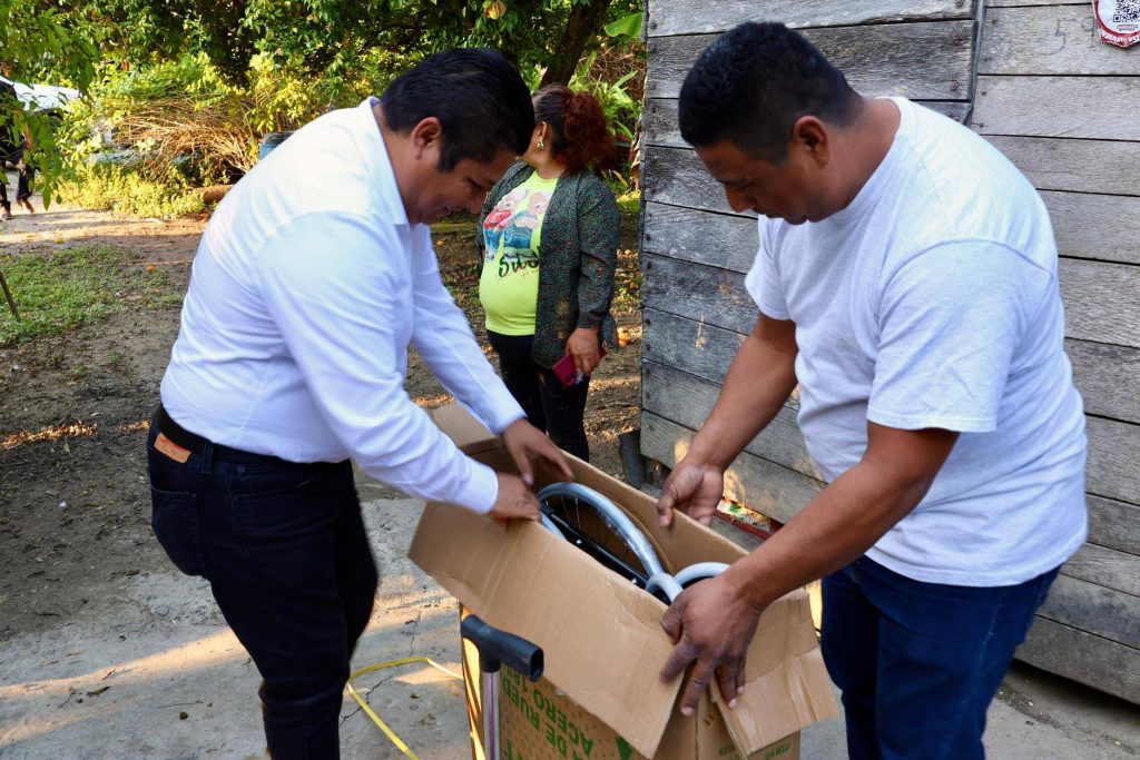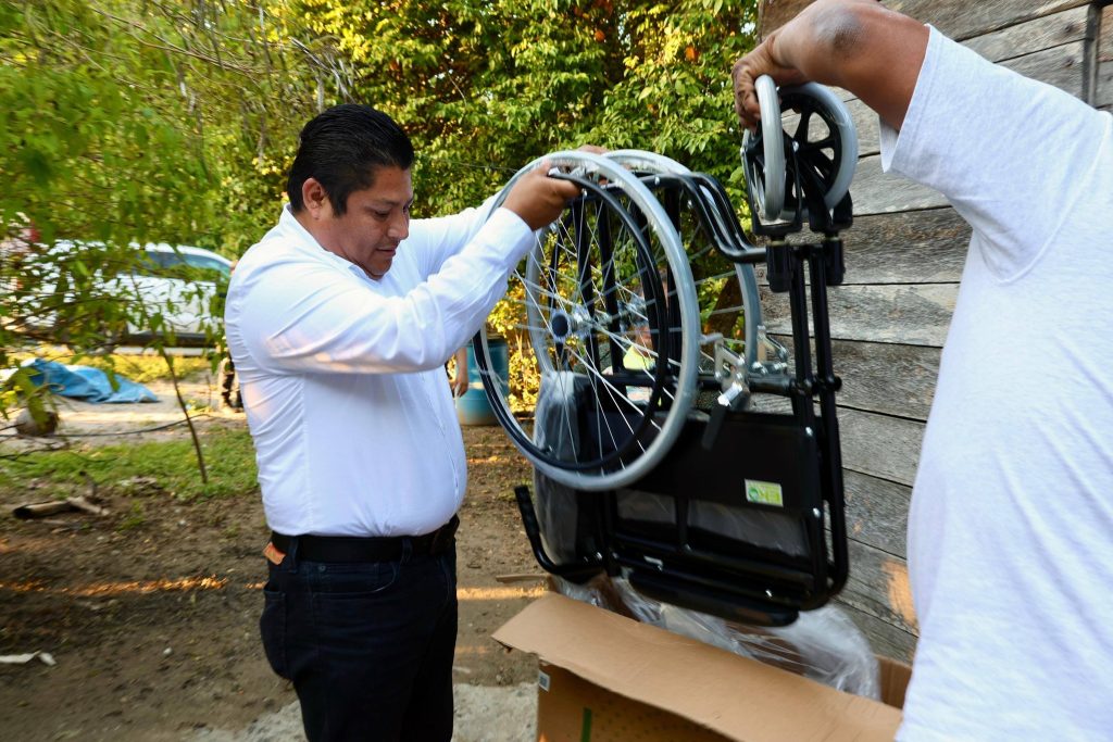Esta tarde, el Presidente Municipal Lic. José del Carmen Olán Olán, acompañado de la Coordinadora del DIF Municipal, Lic. Deysi Córdova Alejandro, realizó la entrega de sillas de ruedas
