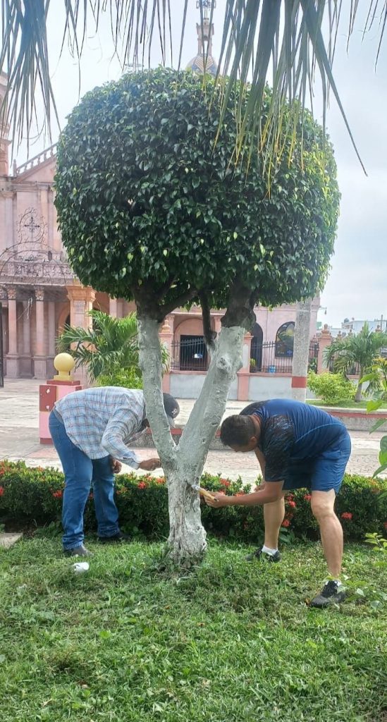 El personal municipal realiza trabajos de mejora en las áreas verdes y en distintos puntos del primer cuadro, con el objetivo de preparar este espacio de convivencia para el próximo Encendido del Árbol Navideño