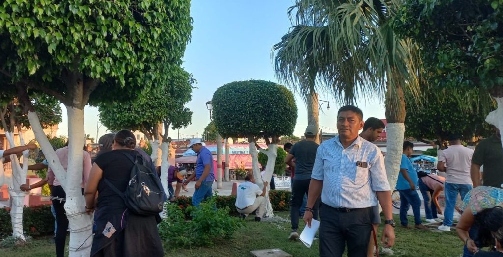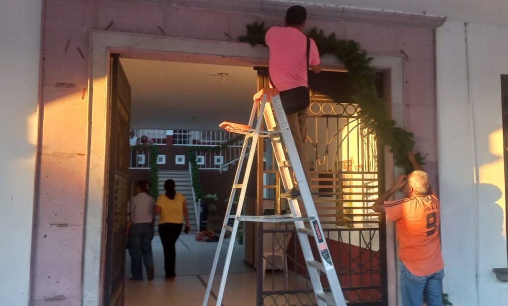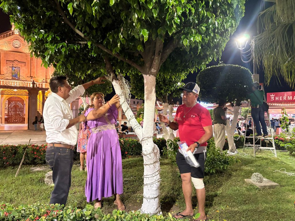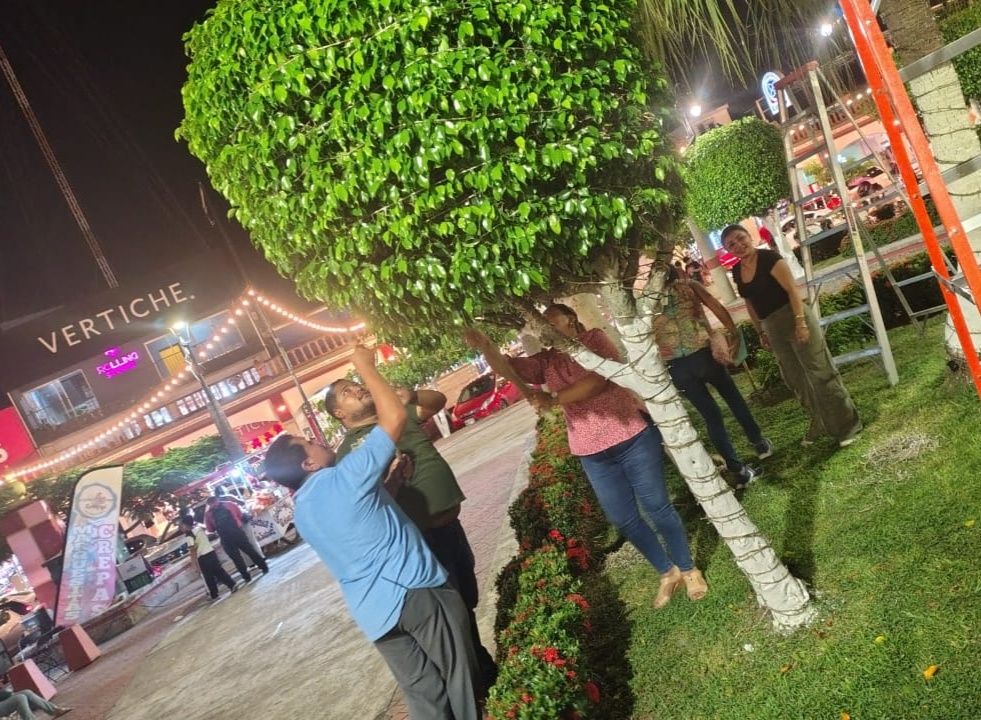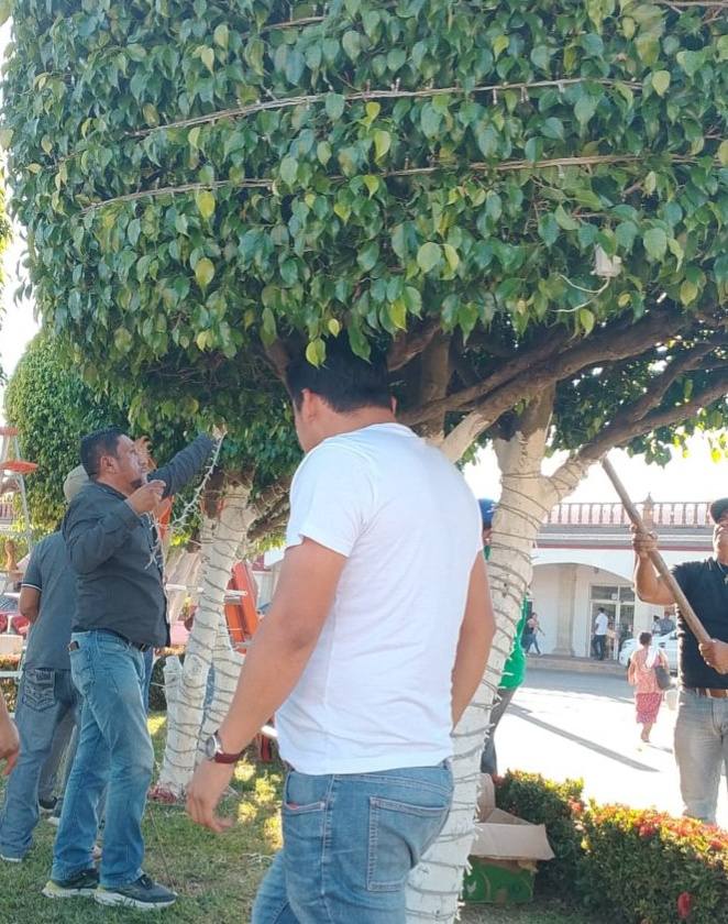 El Ayuntamiento de Jalpa de Méndez inició la colocación de adornos y luces navideñas en el primer cuadro de la ciudad, incluido el Parque Central Coronel Gregorio Méndez Magaña