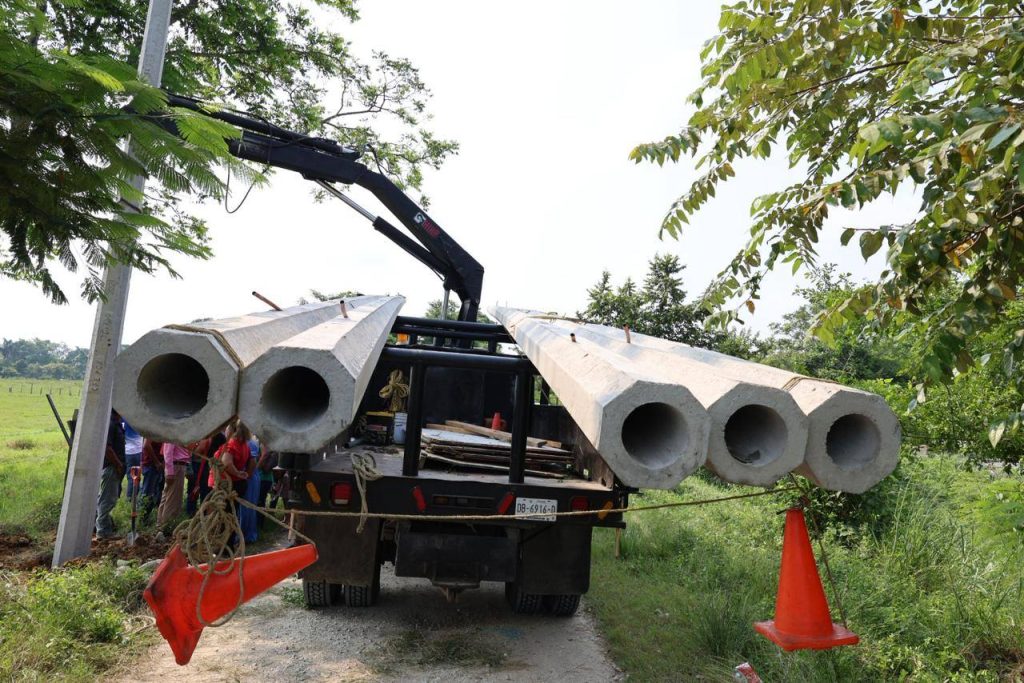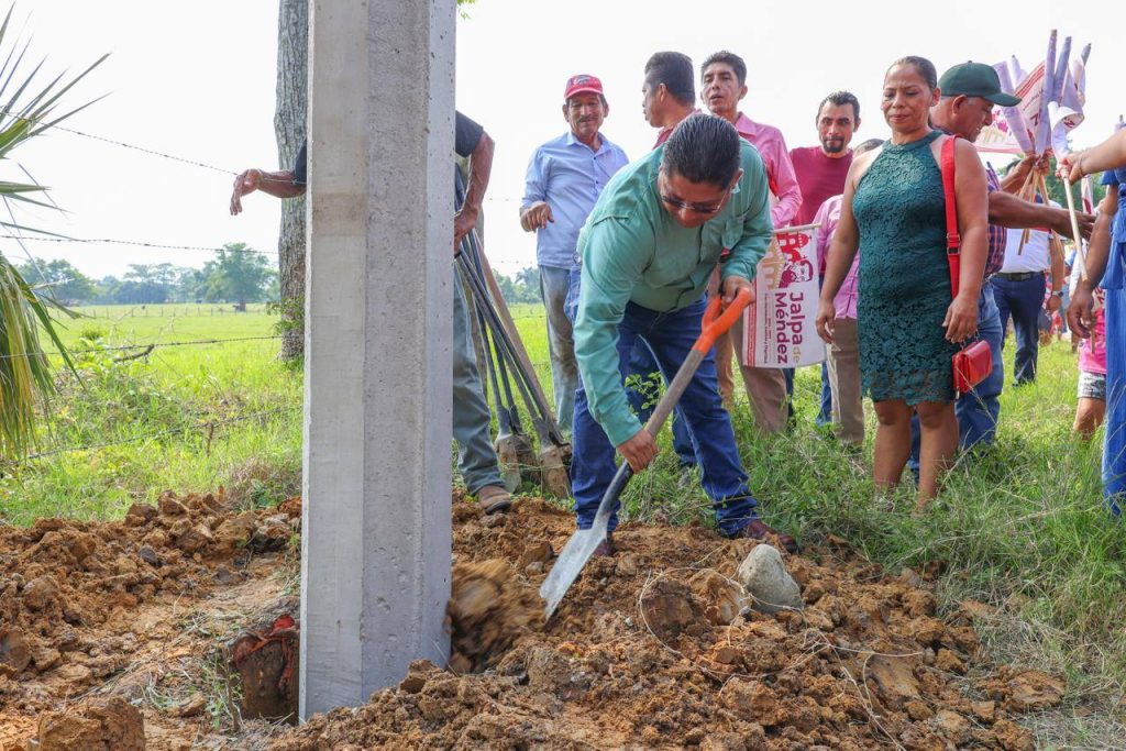 El presidente municipal Lic. José del Carmen Olán Olán dio el banderazo de inicio a la obra de ampliación de red eléctrica en media y baja tensión hacia el panteón del Ejido Santa Lucía, acompañado por el director de Obras Públicas Ing. Juan Díaz Pérez, autoridades locales y habitantes de la comunidad.