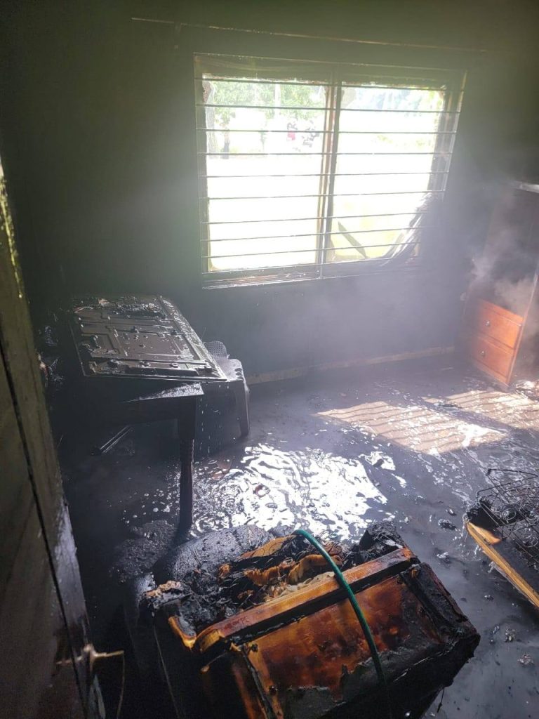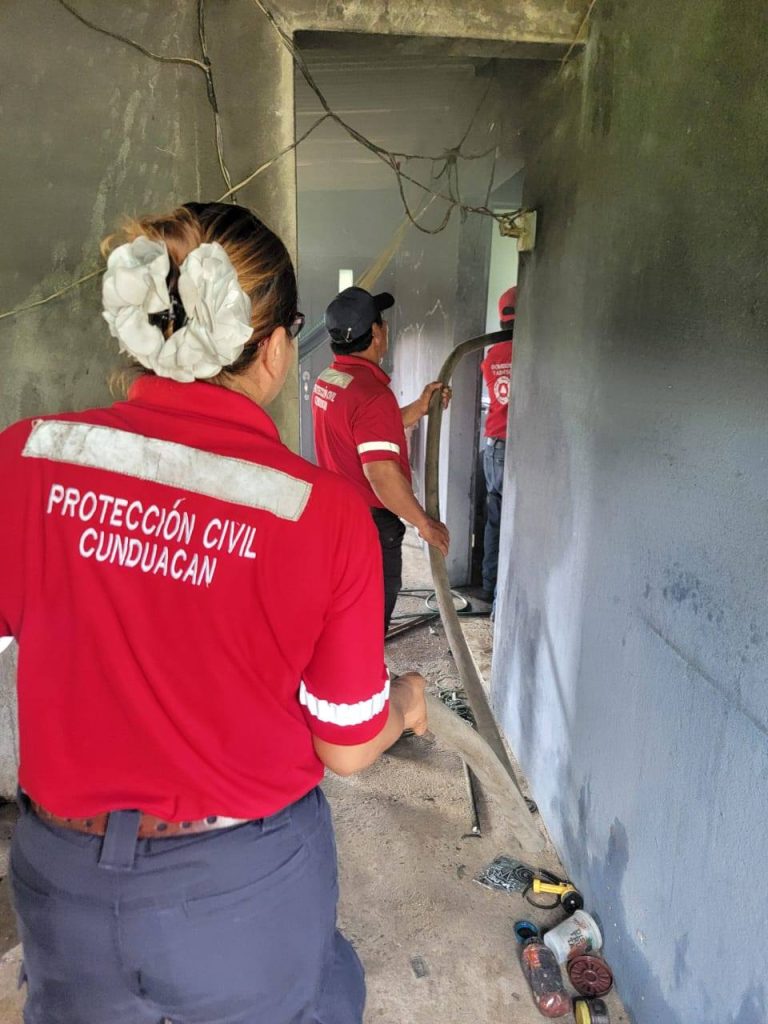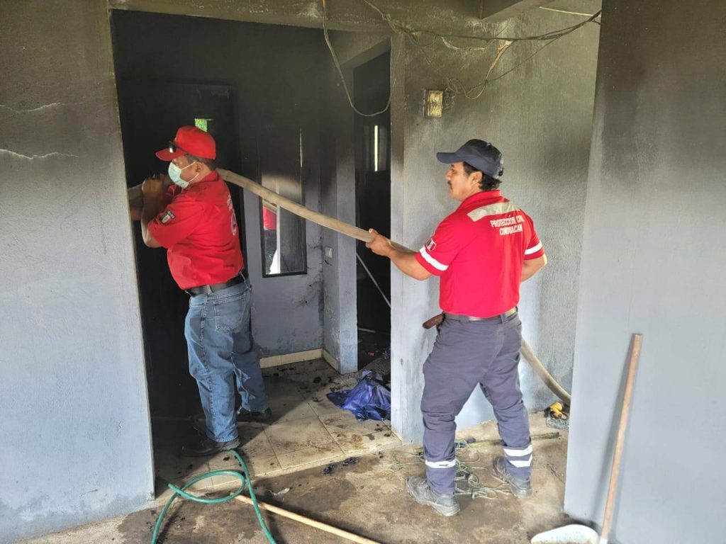 El siniestro afectó únicamente un cuarto de la vivienda, con daños en muebles, aparatos electrónicos y algunas paredes. Se utilizaron 3,000 litros de agua y equipo especializado para sofocar las llamas de manera segura.