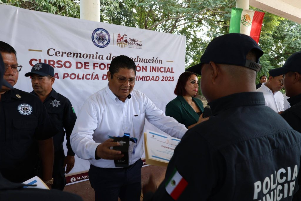 El H. Ayuntamiento de Jalpa de Méndez llevó a cabo la Ceremonia de Graduación del Curso de Formación Inicial para Policía de Proximidad 2025, realizada en el domo de la Dirección de Seguridad Pública Municipal, consolidando la profesionalización de la seguridad pública en el municipio.