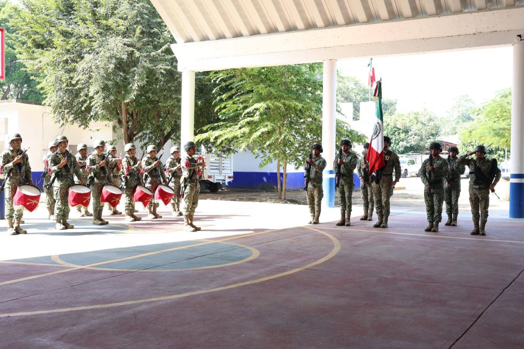 Los Honores a la Bandera estuvieron a cargo de la Banda de Guerra y Escolta del 57 Batallón de Infantería, con sede en Cárdenas, Tabasco