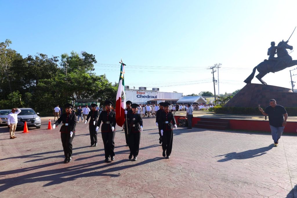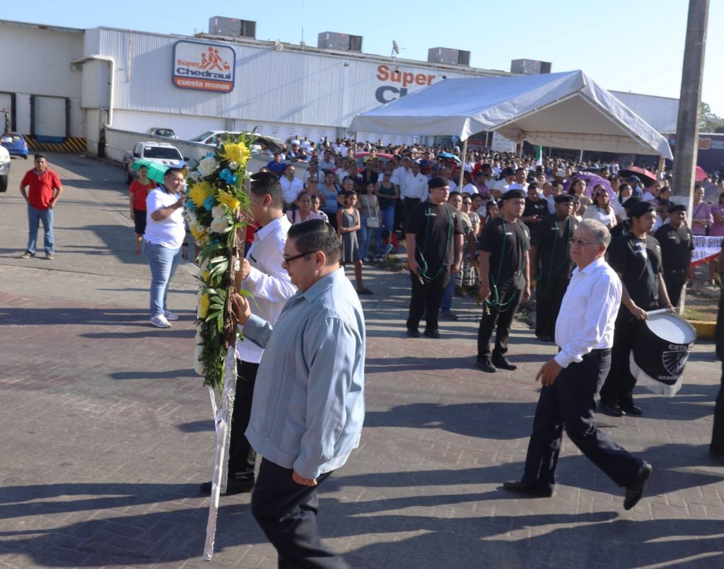 Los honores a la bandera estuvieron a cargo de la escolta y Banda de Guerra del CBTA No. 94. Posteriormente, el Presidente Municipal y la presidenta del DIF colocaron la ofrenda floral y montaron guardia de honor en memoria del héroe tabasqueño.