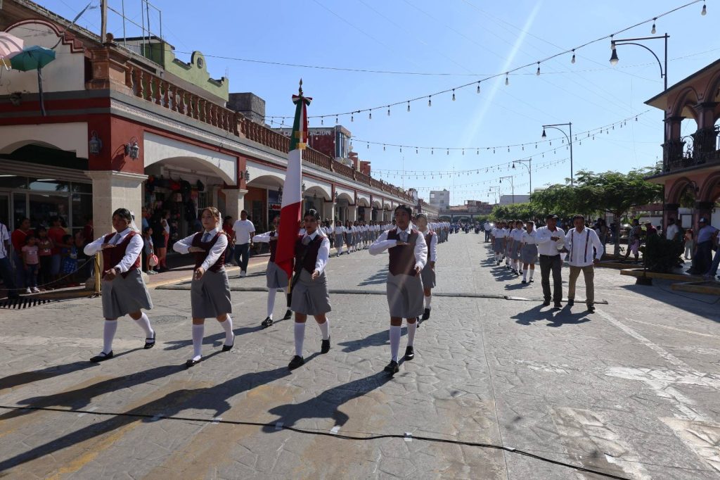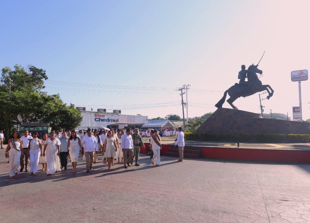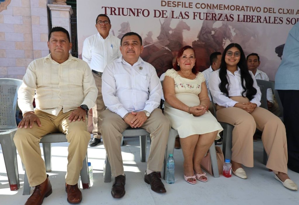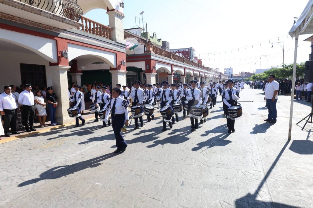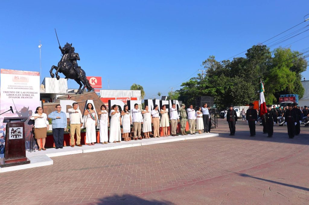 Con orgullo y profundo sentido histórico, el presidente municipal Lic. José del Carmen Olán Olán, acompañado de su esposa, la presidenta del Sistema DIF Municipal Martha Cerino García, encabezó el acto cívico y desfile por el CLXII Aniversario del Triunfo de las Fuerzas Liberales sobre el invasor francés en Tabasco