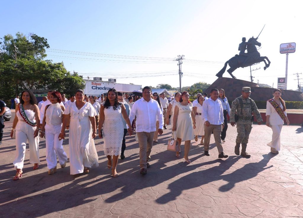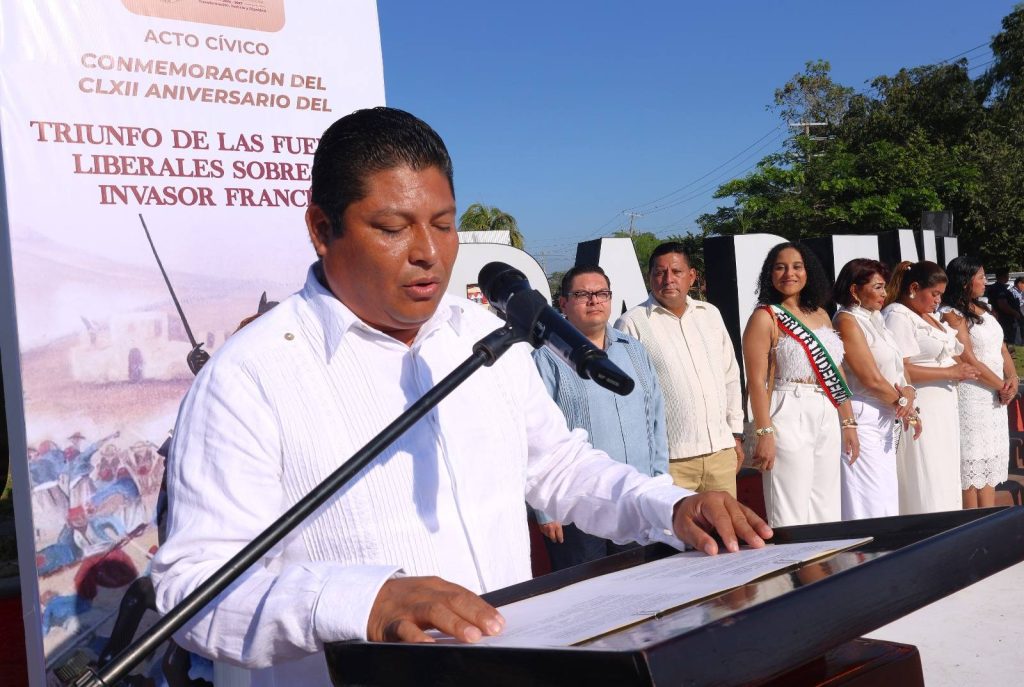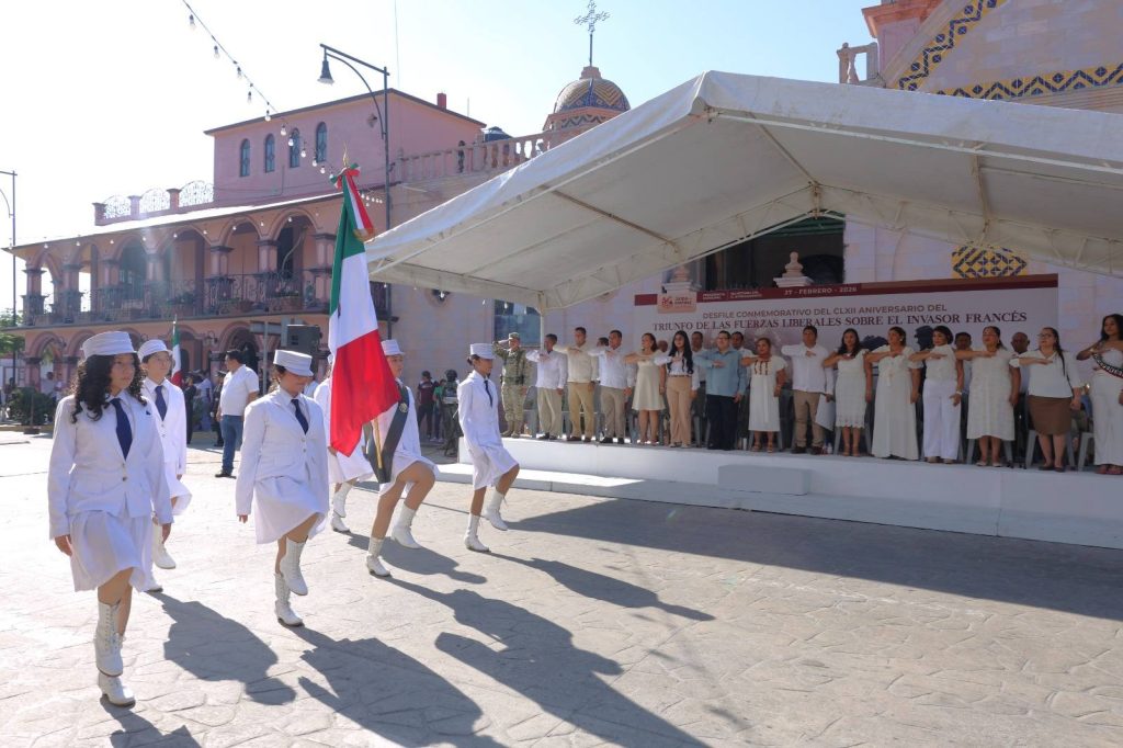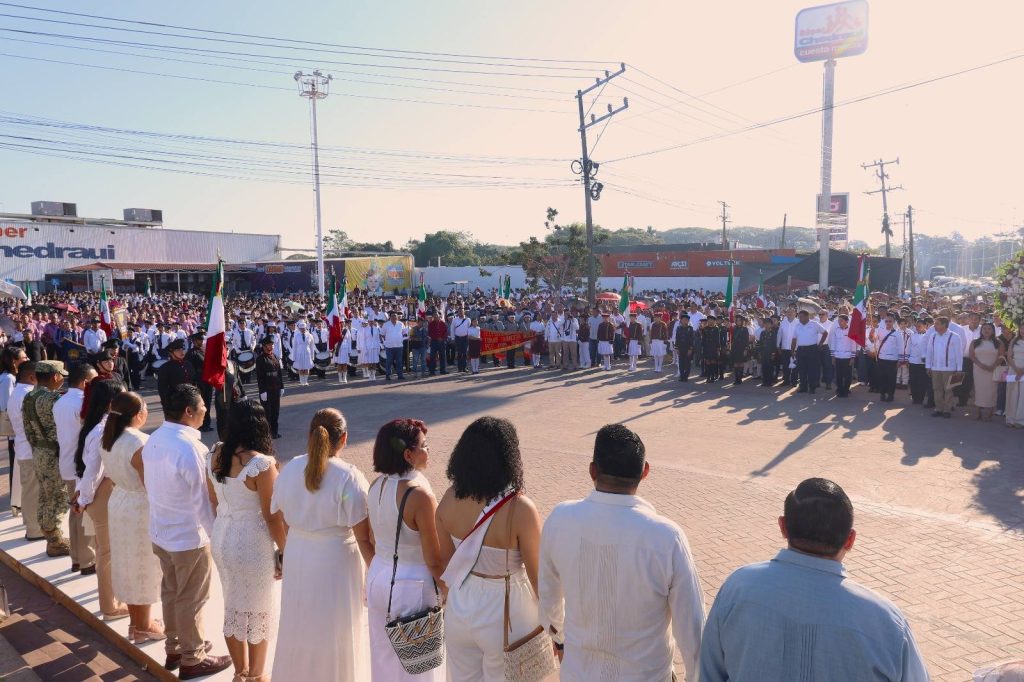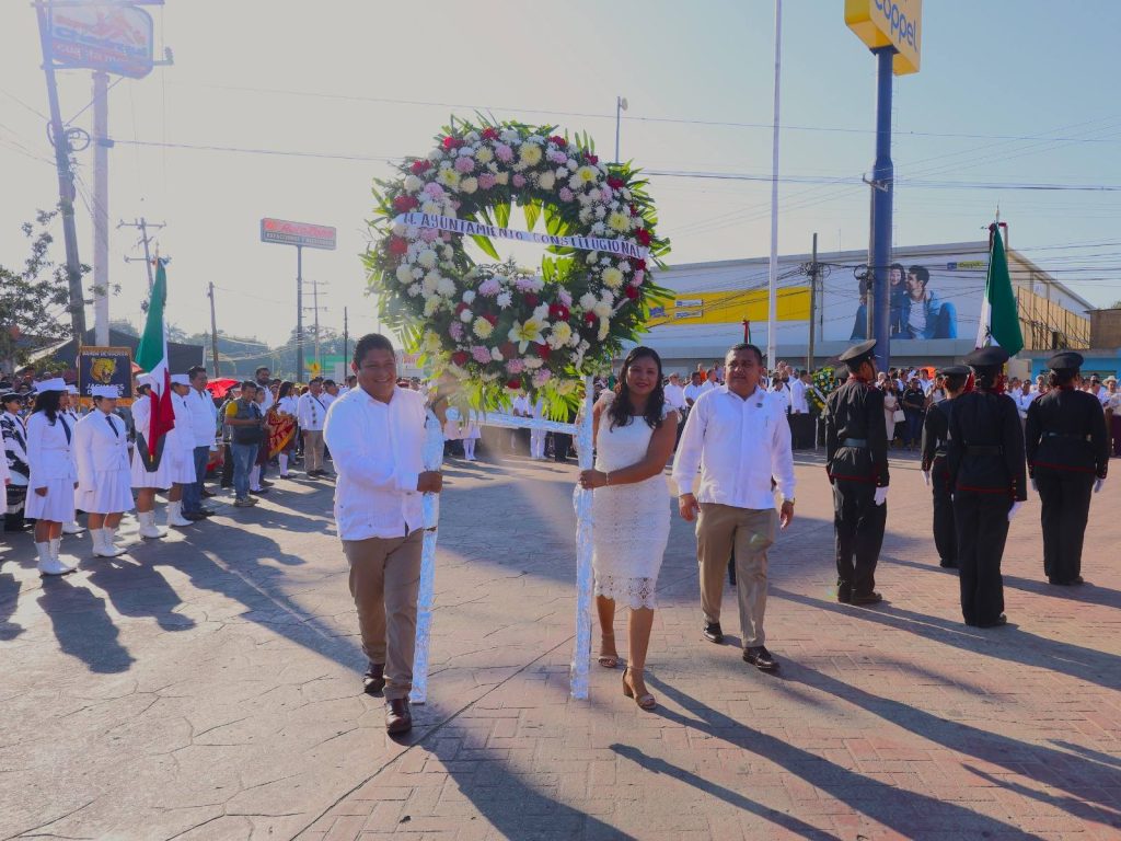Con orgullo y profundo sentido histórico, el presidente municipal Lic. José del Carmen Olán Olán, acompañado de su esposa, la presidenta del Sistema DIF Municipal Martha Cerino García, encabezó el acto cívico y desfile por el CLXII Aniversario del Triunfo de las Fuerzas Liberales sobre el invasor francés en Tabasco