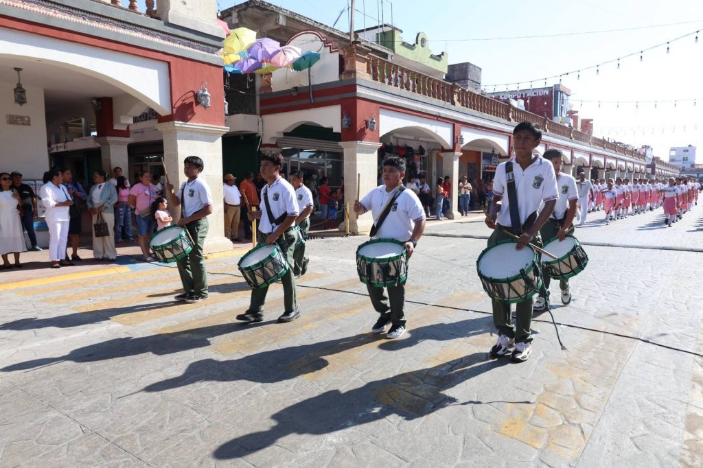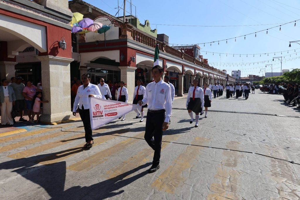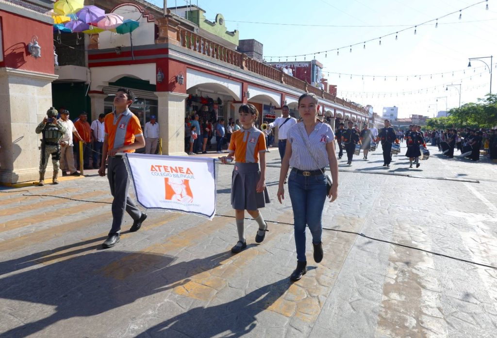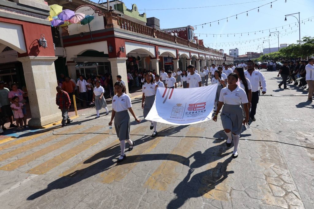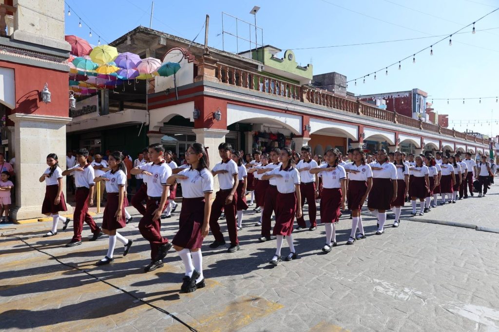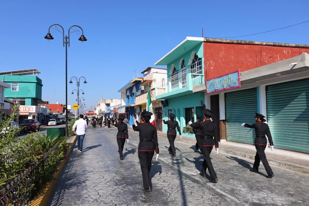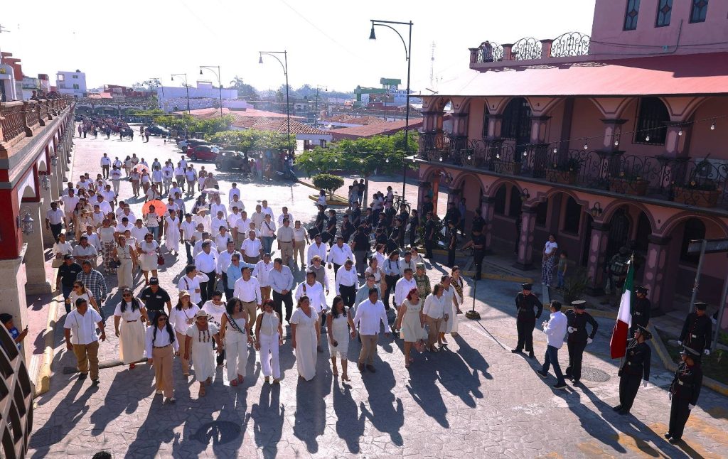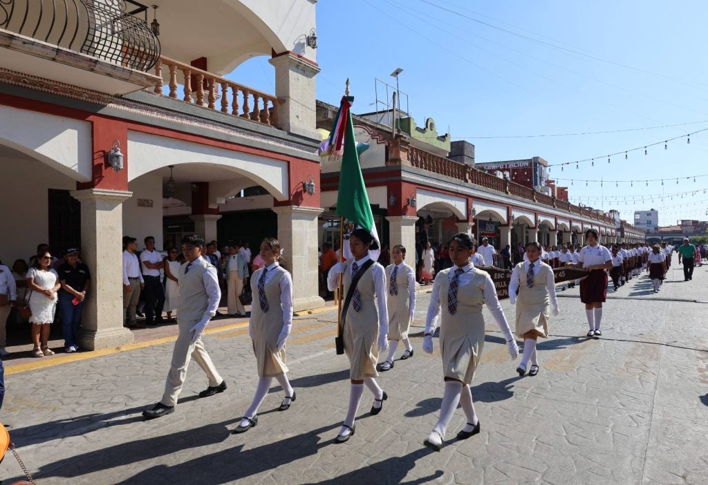 El desfile recorrió la calle Constitución hasta la Plaza Hidalgo, con la participación de instituciones educativas, organizaciones y trabajadores, culminando con una cabalgata que fortaleció el orgullo e identidad de Jalpa de Méndez