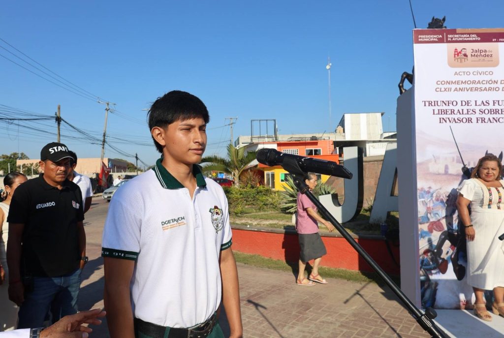 La ceremonia se realizó en el imponente monumento ecuestre al coronel Gregorio Méndez Magaña, jalpaneco ilustre que en 1864 lideró la expulsión de las tropas francesas, defendiendo con valentía la soberanía nacional.