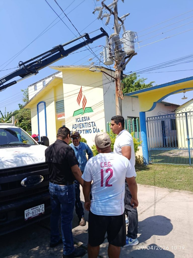 Derivado de la intervención y gestiones del presidente municipal, Lic. José del Carmen Olán Olán, el Ayuntamiento de Jalpa de Méndez, a través del área de Electrificación y Alumbrado Público, atiende de manera directa las afectaciones en el servicio eléctrico ante la alta demanda por la temporada de calor.