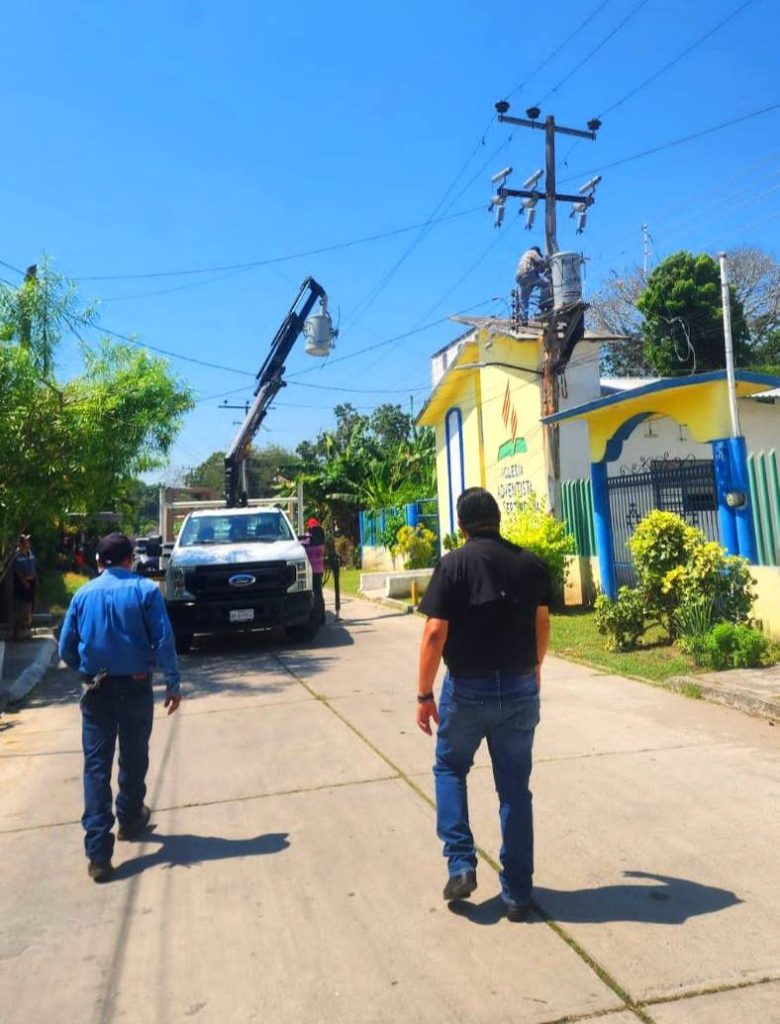 Asimismo, se colocaron nuevos transformadores en la calle Corregidora del Barrio La Candelaria, colonia El Carmen del Poblado Ayapa y en el Ejido Iquinuapa (El Clavo), como parte de las acciones interinstitucional para mejorar la red eléctrica en distintos puntos del municipio.