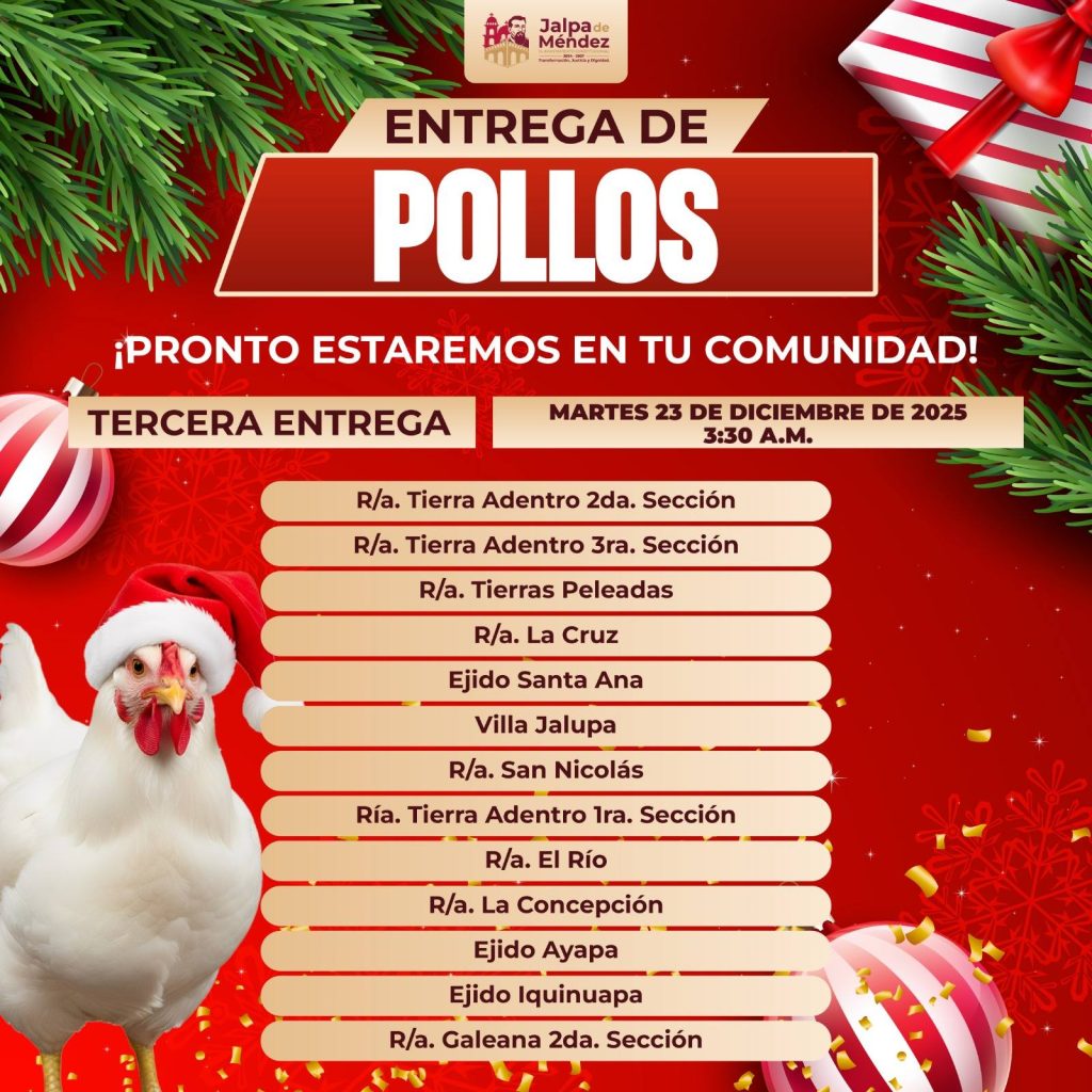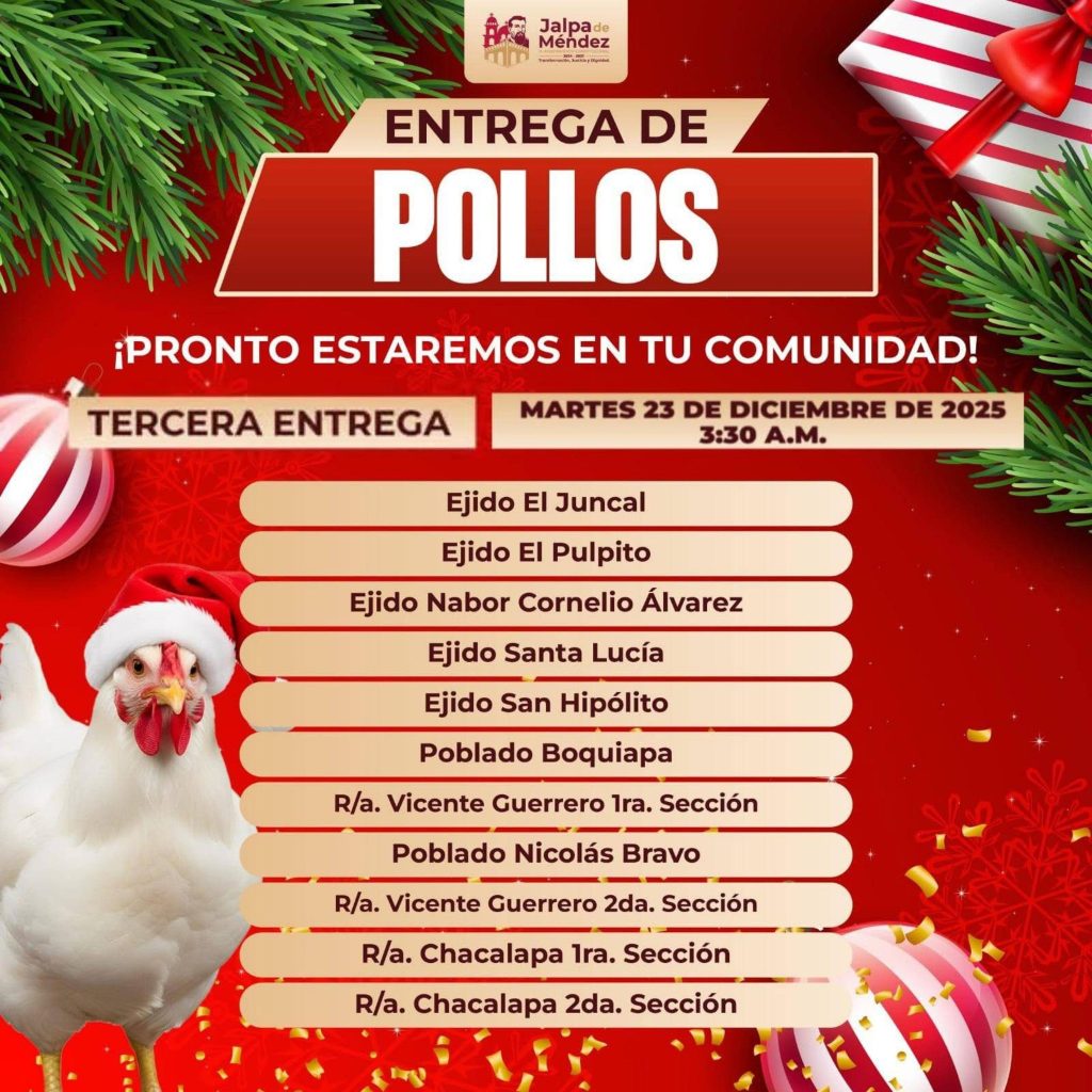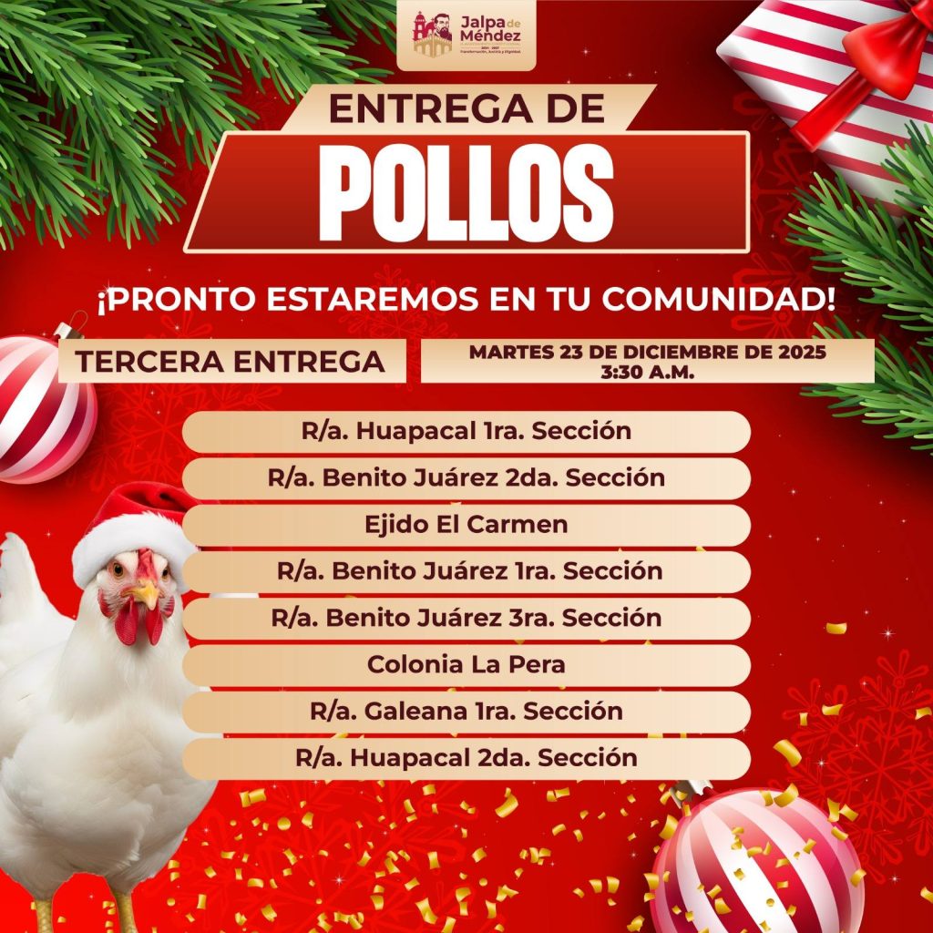 Para dar continuidad a este programa de apoyo social, durante la madrugada de este martes 23 de diciembre, el presidente municipal de Jalpa de Méndez, Lic. José del Carmen Olán Olán, dio el banderazo de salida a la tercera entrega, desde el periférico del municipio.