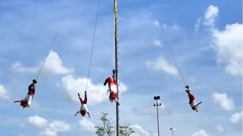 Desde las alturas, los Voladores de Papantla llenan de color y tradición el 10.º Festival de la Butifarra 2025.