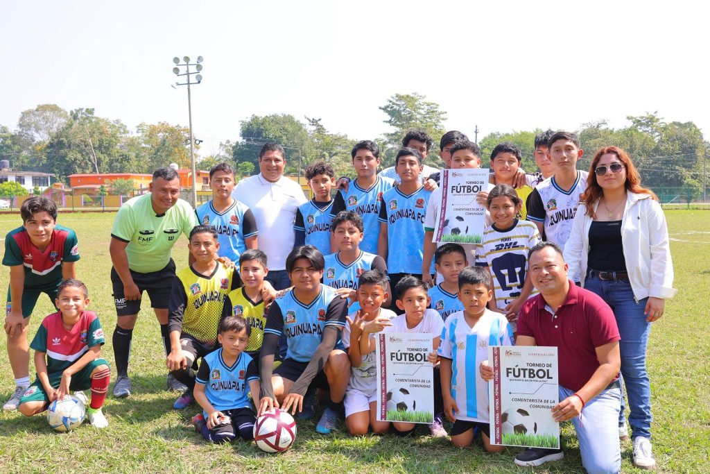 El Presidente Municipal, Lic. José del Carmen Olán Olán, acompañó esta actividad que reunió a niñas, niños, jóvenes, personas adultas y familias en encuentros de fútbol desarrollados en un ambiente de respeto, unidad y participación comunitaria.