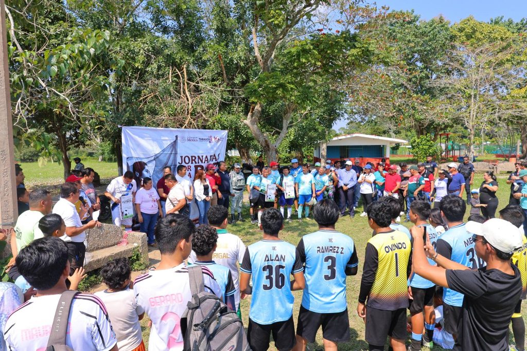 Desde la Unidad Deportiva del Poblado Iquinuapa, el Gobierno Municipal de Jalpa de Méndez se sumó a la jornada nacional “Rueda el Balón por la Paz”, iniciativa que promueve la convivencia, el bienestar y la construcción de paz a través del deporte.