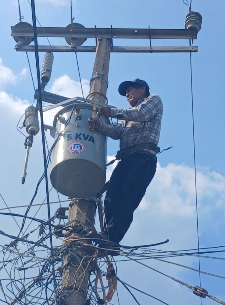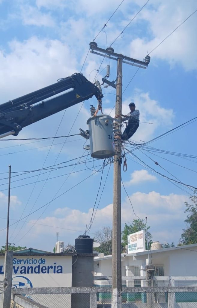 En la Ranchería Benito Juárez 2da se realizó el cambio de transformador, garantizando que las familias del sector cuenten con un abastecimiento eléctrico confiable.