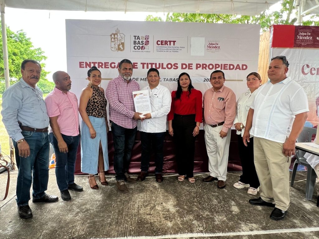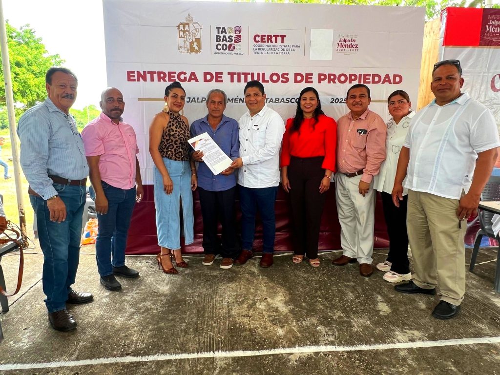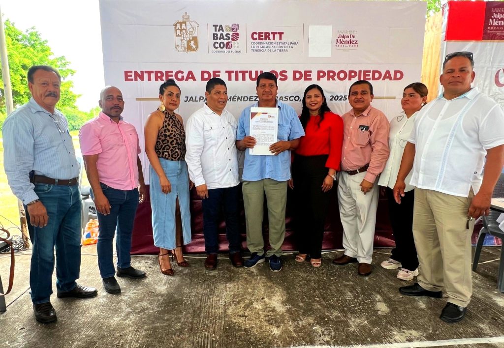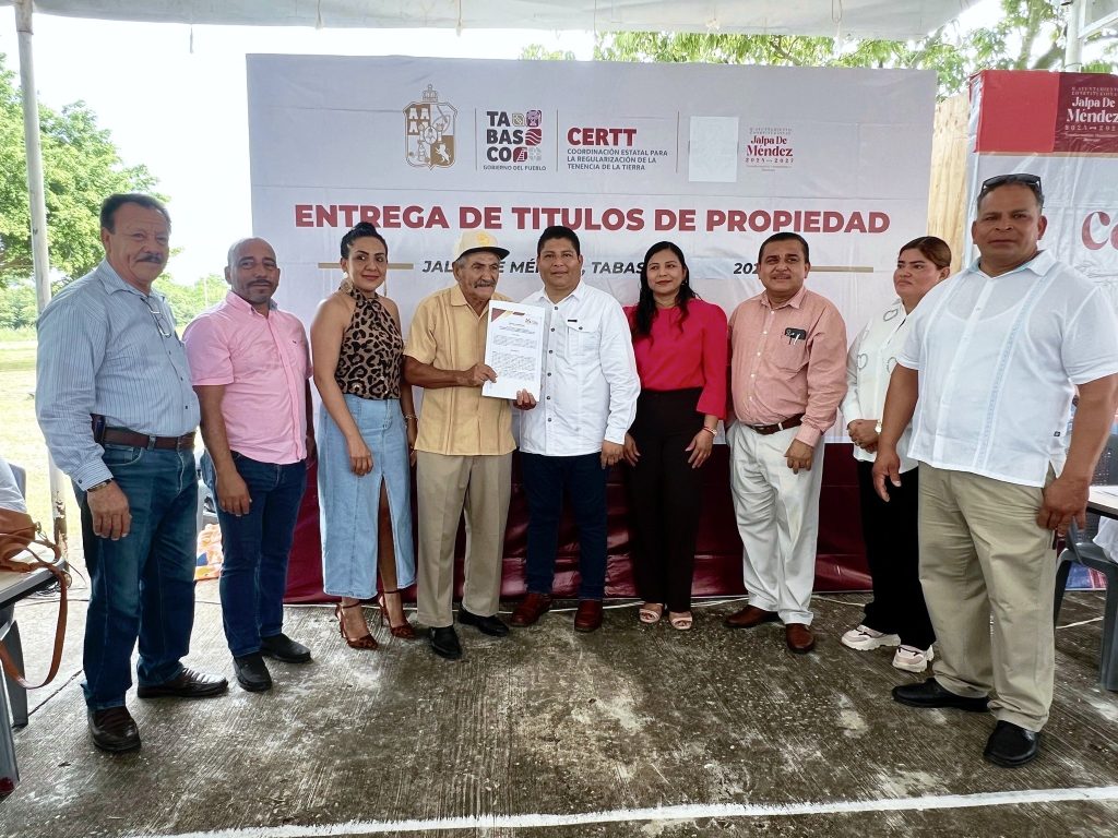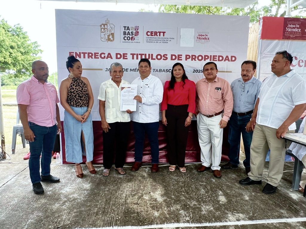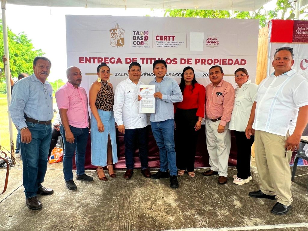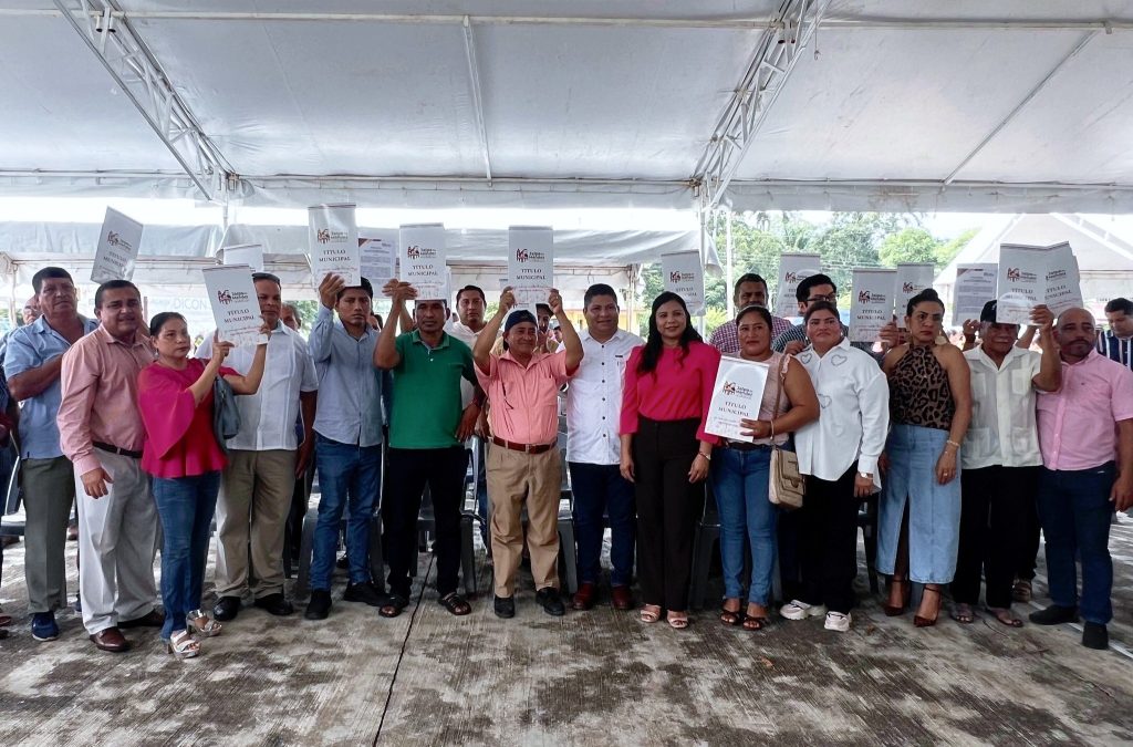 Hoy en Villa Jalupa, el presidente municipal, Lic. José del Carmen Olán Olán, entregó títulos municipales de propiedad a 25 familias de distintas comunidades. Con el respaldo de la Dirección de Asuntos Jurídicos y la Coordinación Municipal de la Tenencia de la Tierra, se garantiza certeza jurídica y se acerca la atención del Ayuntamiento directamente a la gente.