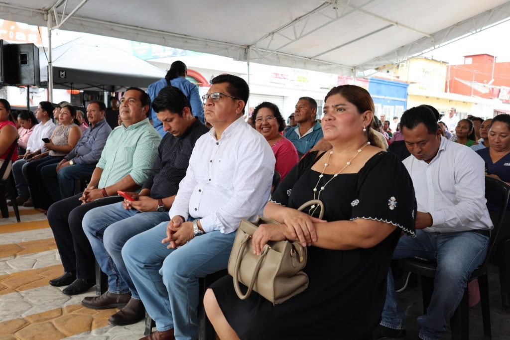 En el presidium acompañaron al alcalde el Secretario del Ayuntamiento, Lic. Manuel Sastré de Dios, y el Director de Obras Públicas, Ing. Juan Díaz Pérez; mientras que el Gobernador estuvo acompañado por el Secretario de Ordenamiento Territorial y Obras Públicas, Daniel Arturo Casasús Ruz.