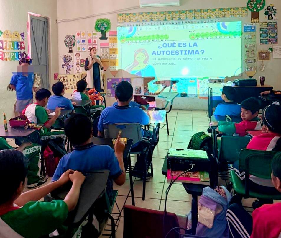 En la Escuela Primaria Miguel Ángel Javier Madrigal, ubicada en la cabecera municipal, se impartieron pláticas a alumnas y alumnos de 5.º y 6.º grado sobre “Mi autoestima y conducta” e “Higiene en adolescentes”, con el objetivo de fortalecer el autocuidado y la sana convivencia.