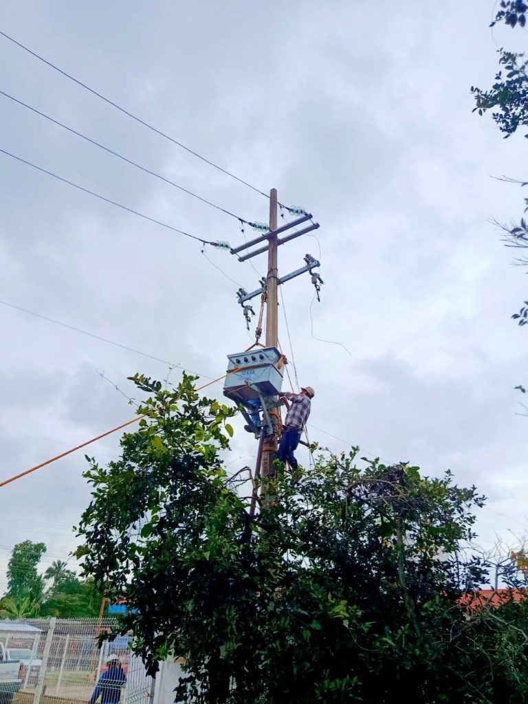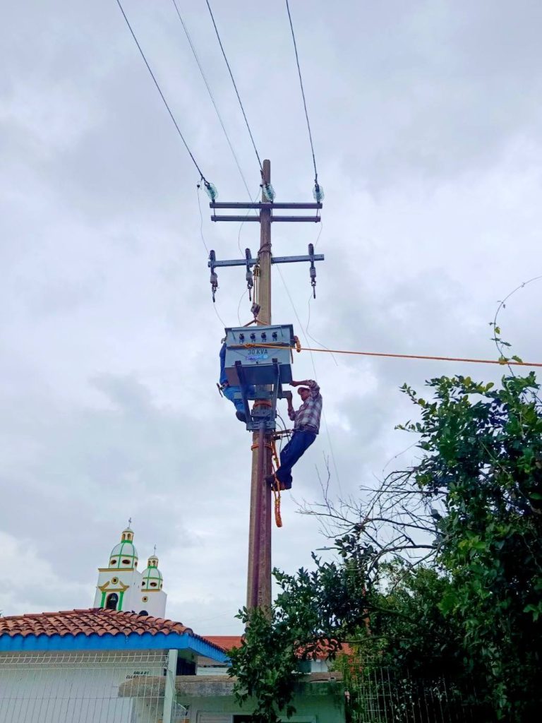 Tras cinco días sin agua por la falla del equipo anterior, el presidente municipal Lic. José del Carmen Olán Olán donó un nuevo transformador de 30 KVA, el cual fue colocado por el personal de Electrificación y Alumbrado Público para restablecer por completo la operación del pozo. 🔧💡