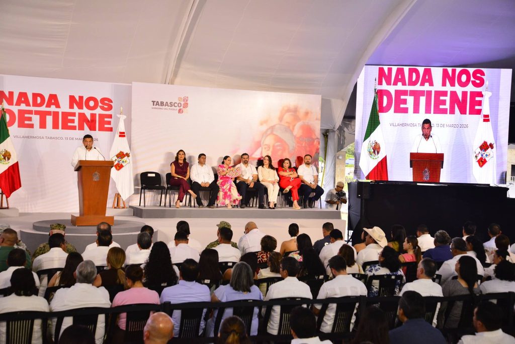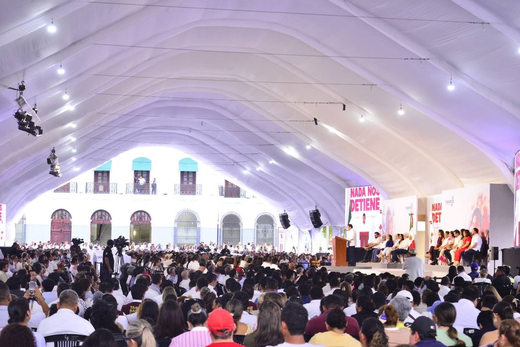 El gobernador de Tabasco, Javier May Rodríguez, encabezó en la Plaza de Armas de Villahermosa el evento “Encuentro con el Pueblo”, donde presentó un balance de acciones y programas que impulsa su administración para el desarrollo del estado.