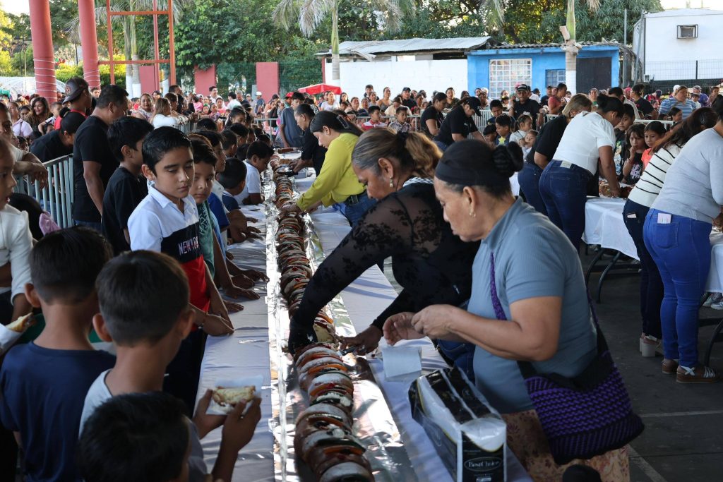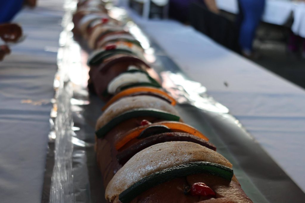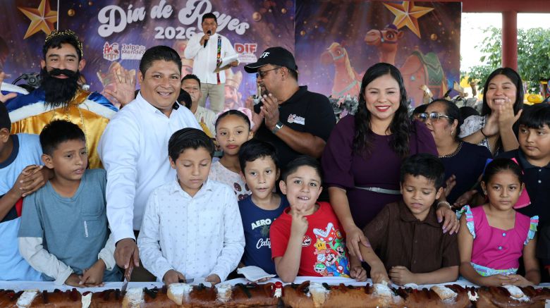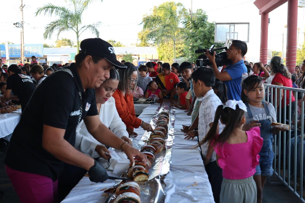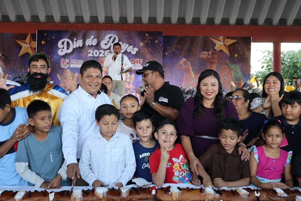 Rebanadas de rosca y chocolate se reparten entre sonrisas, juegos y convivencia, en un ambiente que refuerza las tradiciones y acerca el gobierno a las familias.