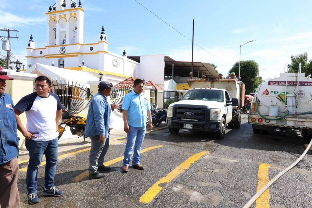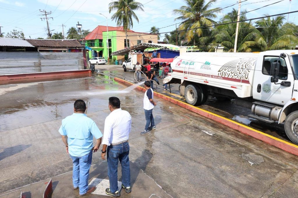 Personal del H. Ayuntamiento llevó a cabo labores de limpieza y retiro de basura en la carretera principal de la Ranchería Reforma 2ª Sección, así como el lavado con pipa y barrido general de espacios públicos destinados a la convivencia y actividades culturales.