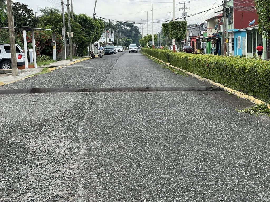 Por instrucciones del Presidente Municipal, Lic. José del Carmen Olán Olán, personal de Servicios Municipales realiza trabajos de bacheo y colocación de topes sobre la calle Corregidora, del Barrio La Candelaria, a la altura del panteón municipal.