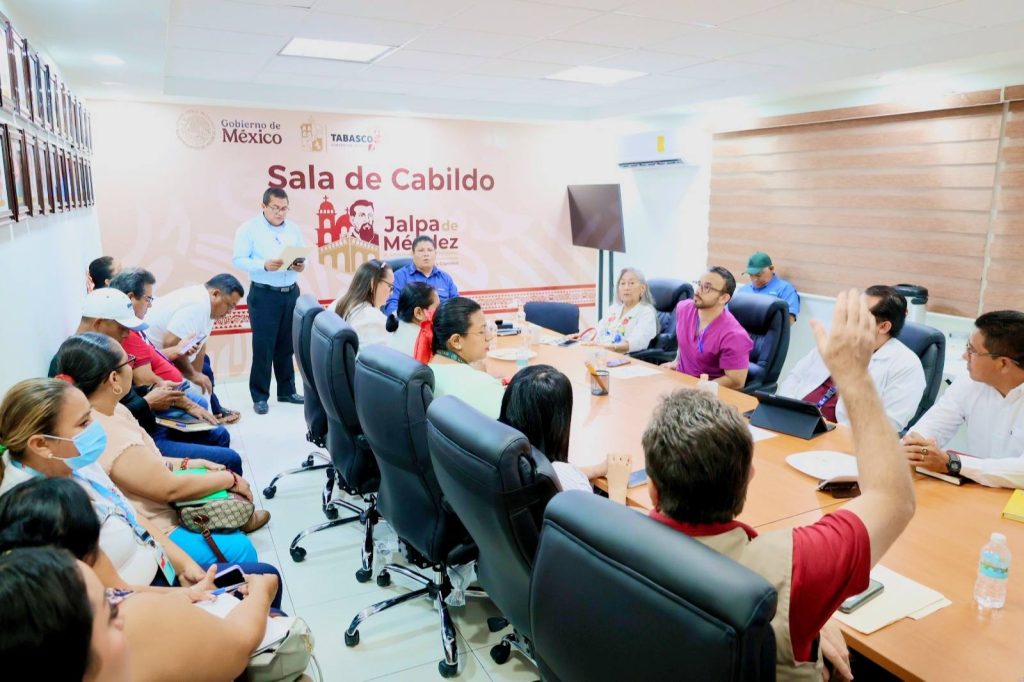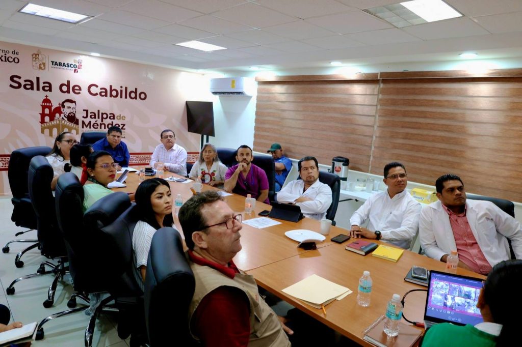 En la Sala de Cabildo del H. Ayuntamiento de Jalpa de Méndez se llevó a cabo la Cuarta Sesión del Comité Municipal de Salud, encabezada por el Presidente Municipal, Lic. José del Carmen Olán Olán, con la participación de autoridades del sector salud y del sector educativo, servidores públicos municipales y autoridades comunitarias.