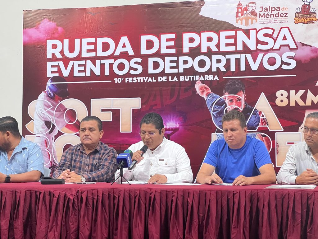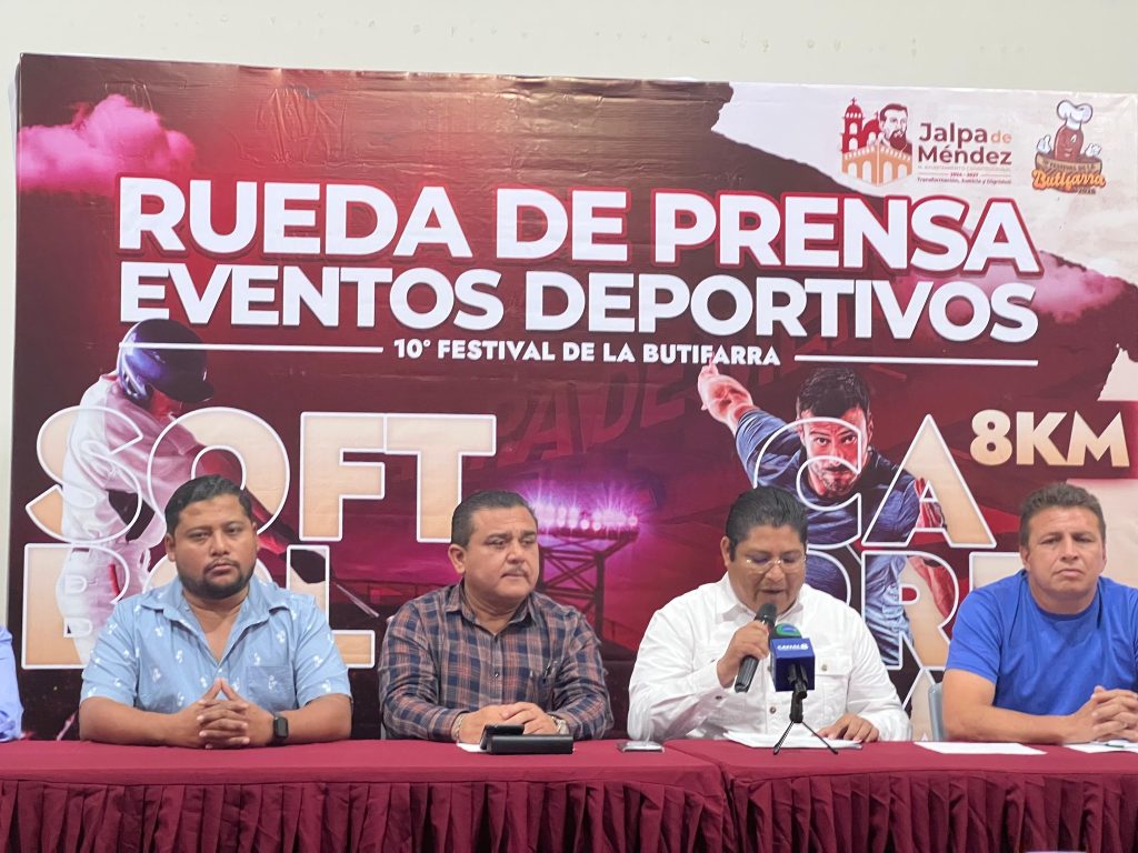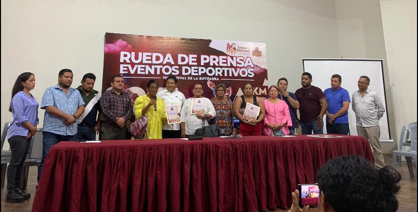 El Ayuntamiento de Jalpa de Méndez llevó a cabo la rueda de prensa presidida por el presidente municipal Lic. José del Carmen Olán Olán, en el auditorio de la Casa de la Cultura “Profesor Andrés Ulin Guzmán”, para dar a conocer los eventos deportivos del 10º Festival de la Butifarra 2025.