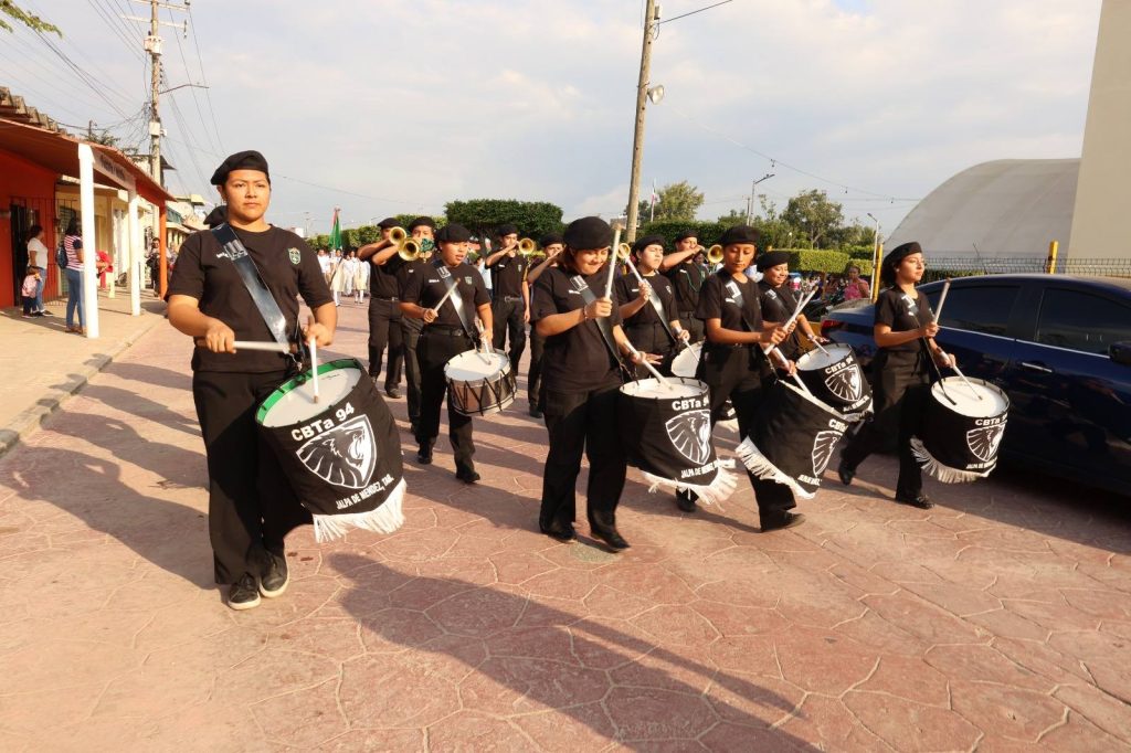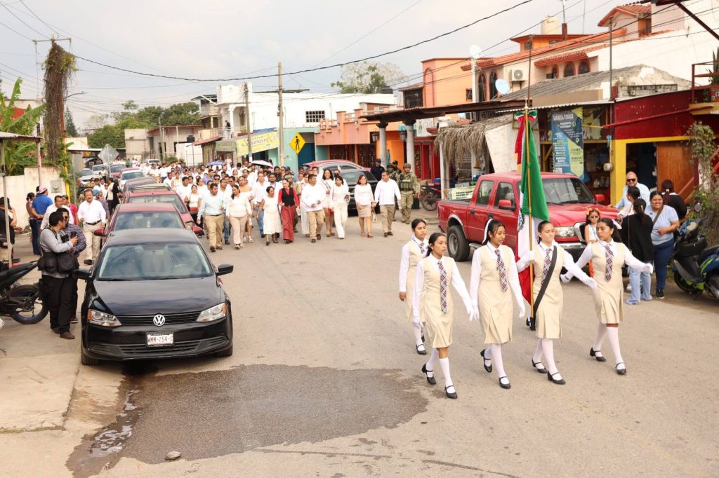El acto cívico y el desfile conmemorativo fueron encabezados por el Presidente Municipal, Lic. José del Carmen Olán Olán, acompañado por la Mtra. Patricia Iparrea Sánchez, Secretaria de Educación del Estado de Tabasco, así como autoridades educativas, representantes sindicales, integrantes del Cabildo, la diputada local María Félix García Álvarez, directivos escolares y servidores públicos.